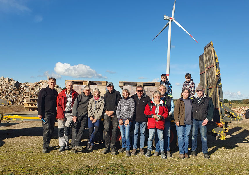 Am 18. Oktober ging es dann ab 9 Uhr zum Steine kloppen. Der Einladung an alle Haushalte folgten 14 Personen. Ziel der Veranstaltung war es, die Steine des abgerissenen alten Landhauses zu reinigen, um sie später in einem neuen Gebäude zu verwenden. Vier Paletten Steine konnten schließlich mit großem Einsatz der beteiligten Sehestedter Bürgerinnen und Bürger gereinigt werden. Für deren Transport sorgte schließlich die Familie Ahlmann und der Sehestedter Imbiss mit Holger Petersen sorgte für eine angemessene Bewirtung der Steineklopper. whe